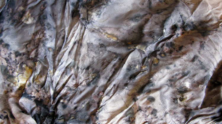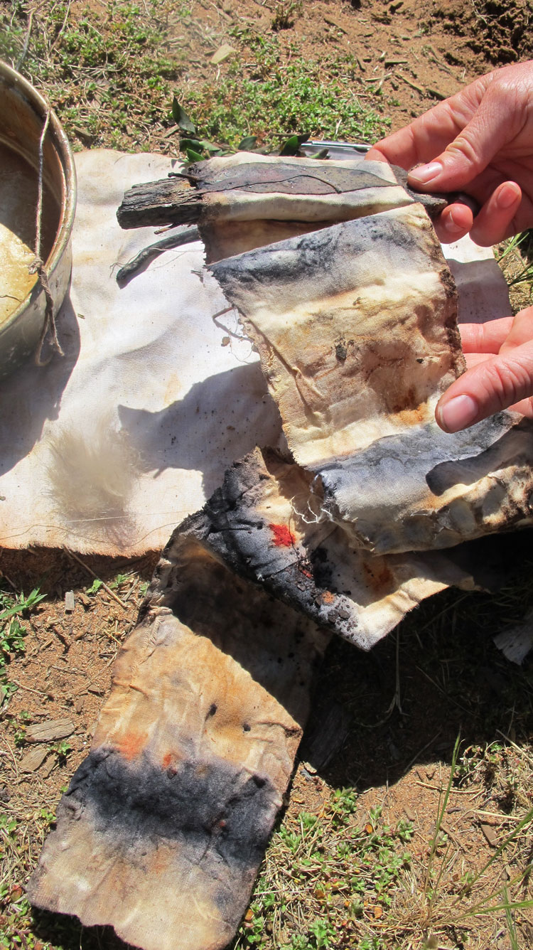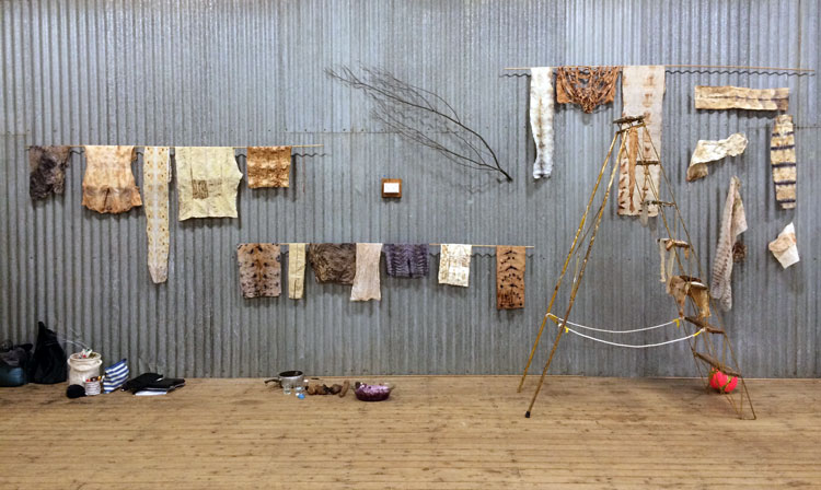 The dye materials were foraged in the bush and rubbish and created in campfires and sunbaths.